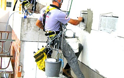 Obramax Construcciones y Rehabilitaciones puede realizar todo tipo de servicios en fachadas y lugares de difícil acceso, valiéndose de tecnología y personal con experiencia en arneses y descenso vertical.